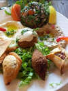 Taboulé, Homos, Moutabal, Labné, Lahmé belajine, Simbousek à la viande, Kebbe boulette et chawarna au poulet
