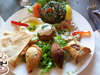 C’est un plat qui réunit taboulé, houmous, moutabal,falafel, lahmé belajine, sambousek à la viande, kebbe boulette et shawarma à la viande.